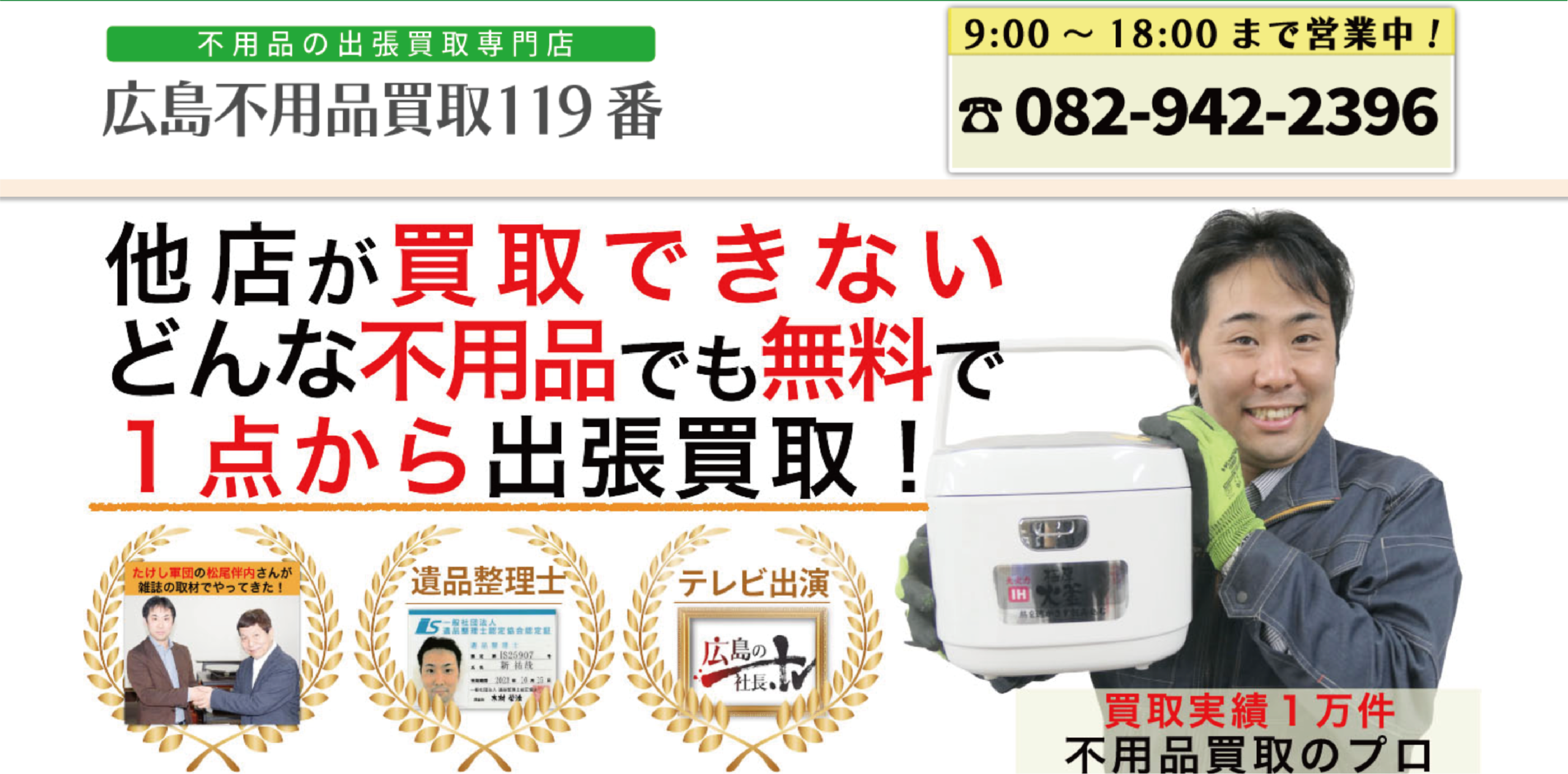 実際に複数社に見積もりを依頼した結果、広島 不用品買取 119番が最も高く買い取ってくれたという事例が確認できます。家具などお金にならない品は引き取り対応に留まる場合もありますが、比較検討の中で価格面で優位性を示したことが好評価につながっています。