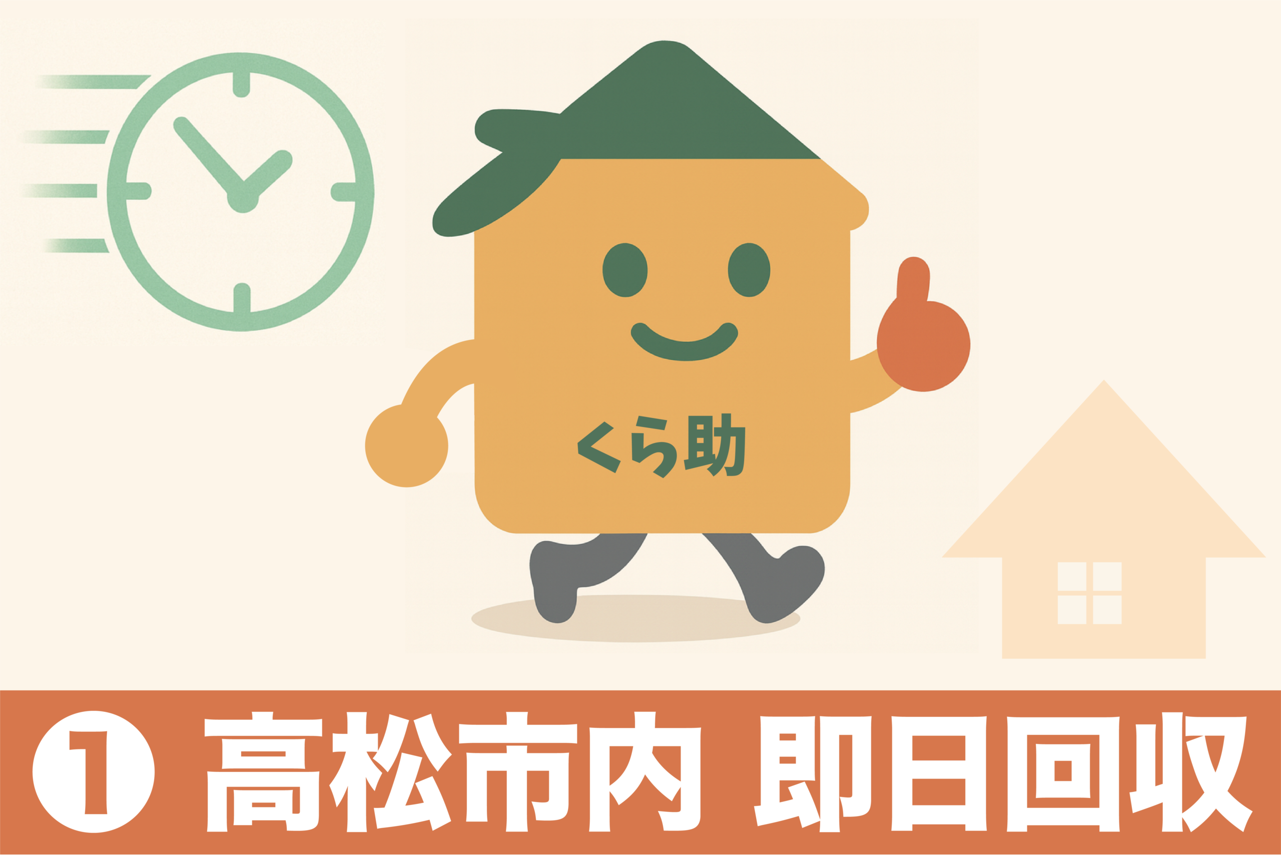 高松市内全域にスタッフが待機。急な引越しや大量の粗大ごみ処分でも、最短即日対応でお伺いします。